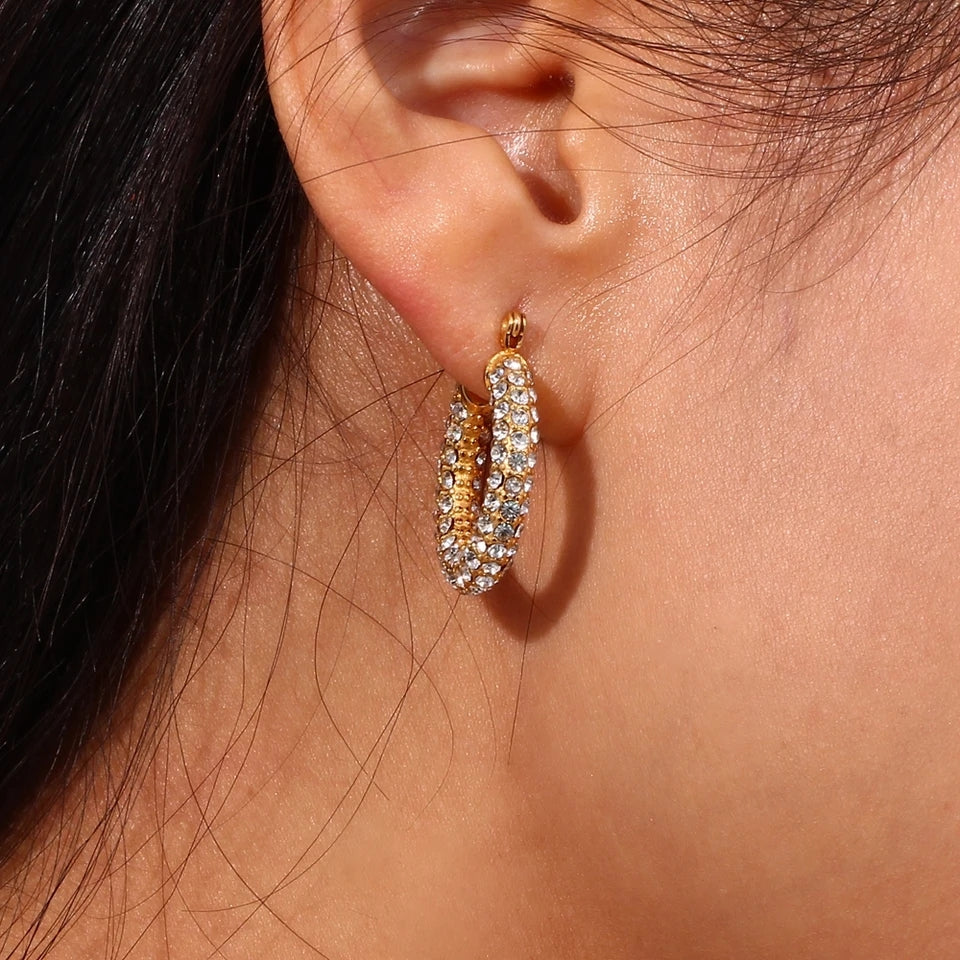 Upgrade your earring game with the Luxury Zircon Hoops. Made with tarnish-free, hypoallergenic 18K Gold and durable Stainless Steel, they'll keep their shine and keep your ears happy. Plus, add some texture and edge with the zircon detailing. Look good without the irritation!