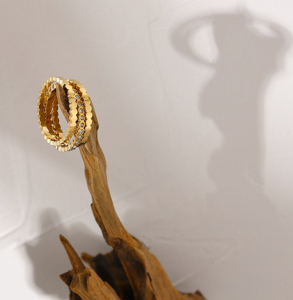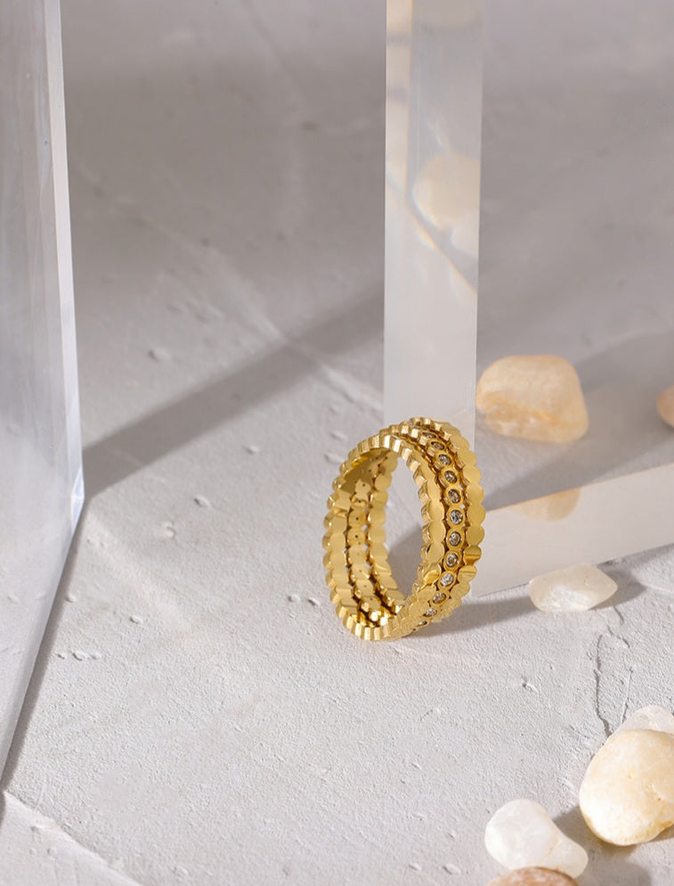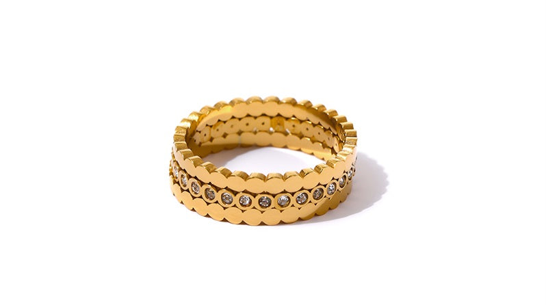 Upgrade your ring game with the Triple Stack Circle Rings. Wear all together, double up or wear solo. Mix it up however you wish. The zircon detailing adds a nice touch of elegance. They'll also keep your fingers from discolouring too with their gold plating the zircon detailing adds a nice touch of elegance. Material: 316L Stainless Steel